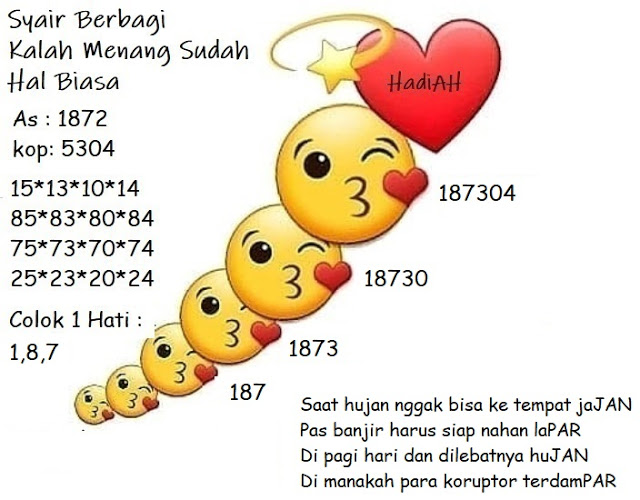 KODE SYAIR NYI PLERED adalah kode syair untuk prediksi pasaran sydney singapura hongkong. Adalah kumpulan Gambar prediksi kode syair hk tercepat posting sekaligus lengkap dengan prediksi hk jitu yang saat ini ada pada website Forum kode syair Toto Hk Vip. Prediksi HK Hongkong 2023. Berikut inilah prediksi hk jp jitu malam ini yang telah dirangkum berdasarkan rumus perhitungan master google dari pusat dengan berpatokan pada hasil data angka hk keluaran periode sebelumnya. Prediksi HK JP Malam Ini. Minggu 30 April 2023. Angka Main. 8.5.9.1.